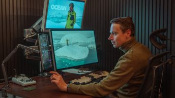 Denis Loctier filming an episode of Ocean on research vessel Celtic Explorer, Ireland – November 2021